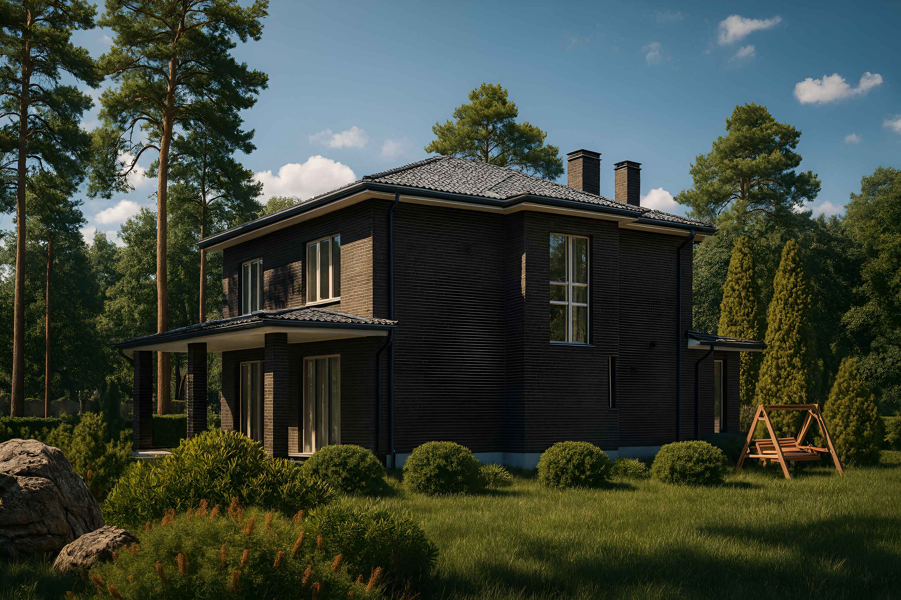 Штучная цементно-песчаная черепица BRAAS с необходимыми доборными элементами. Подкровельная мембрана «Ютайвек». Отделка карнизов и свесов кровли фиброцементной доской, либо софитами Docke.