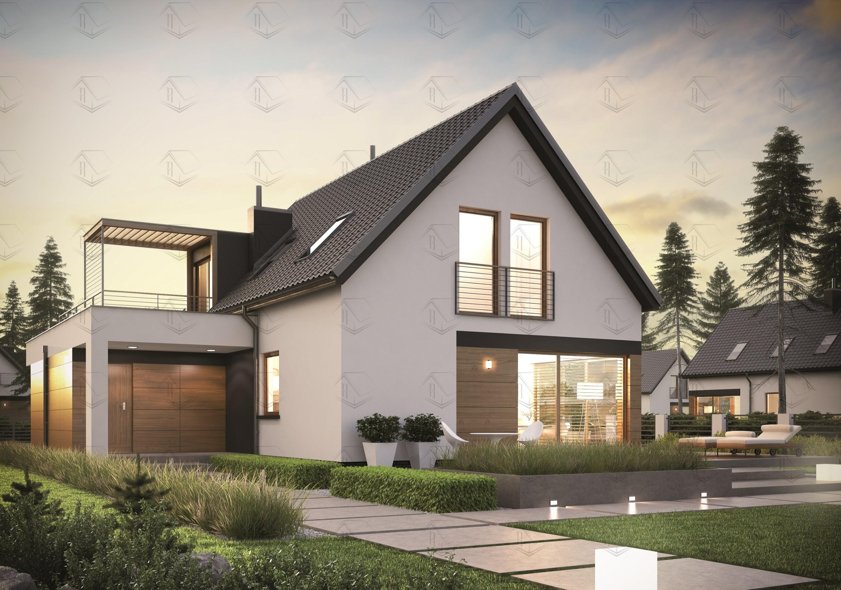 - Особенности: с гаражом, с террасой, с панорамными окнами, с мансардой