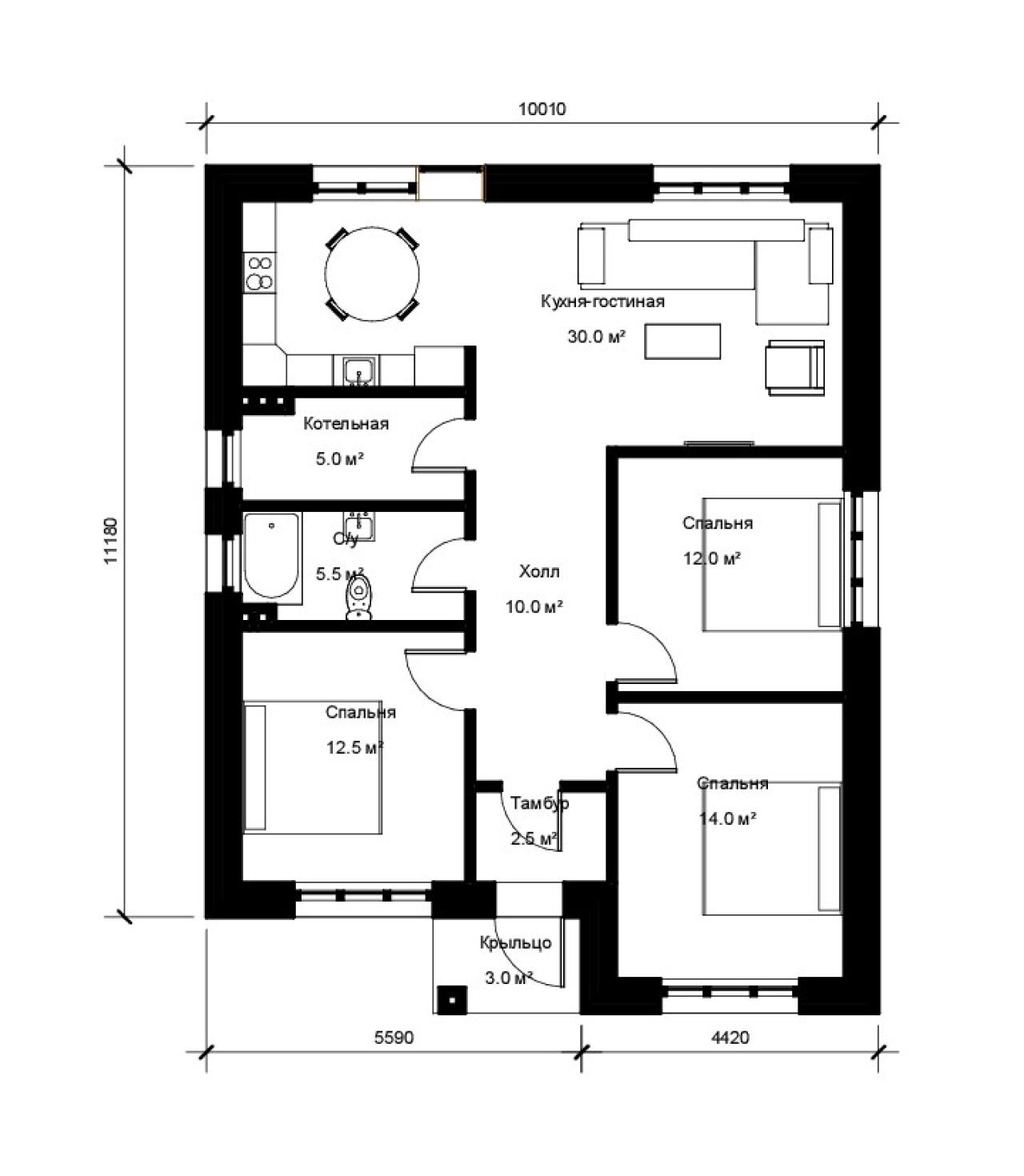 Проект одноэтажного коттеджа с шатровой крышей сочетает в себе стиль, комфорт и элегантность в потрясающем доме. Эта архитектурная концепция предлагает идеальное сочетание современного дизайна и функциональных решений, создавая идеальное место для счастливой семейной жизни.