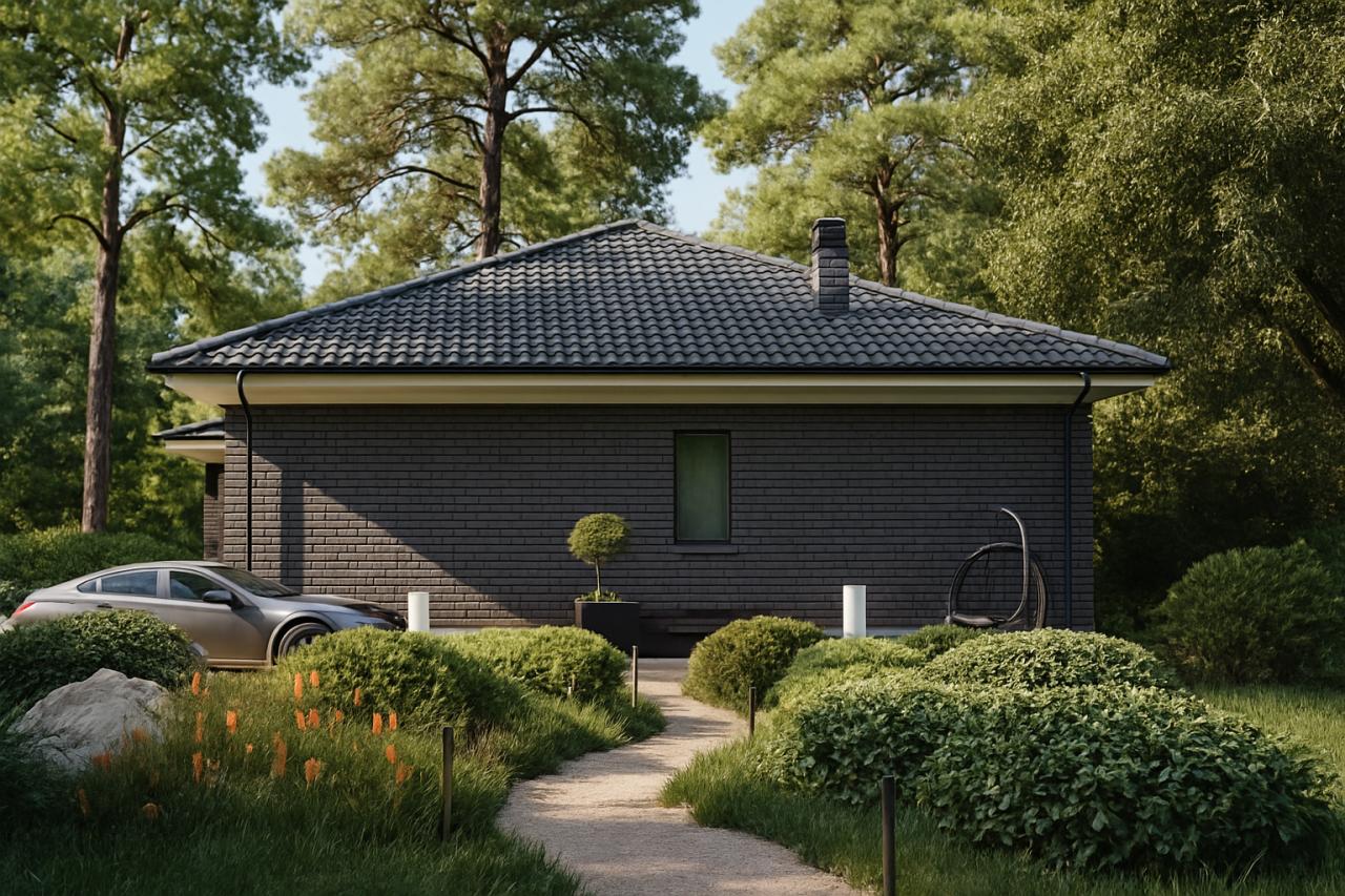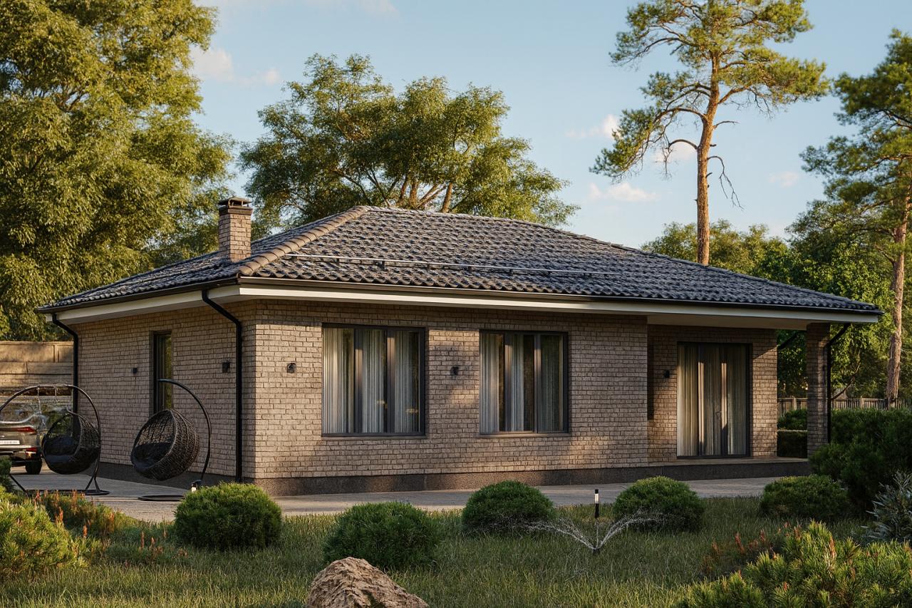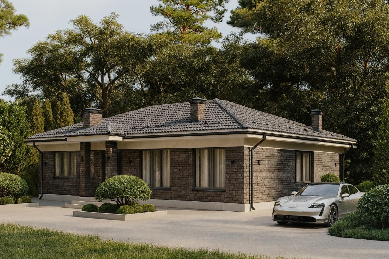 Штучная цементно-песчаная черепица BRAAS с необходимыми доборными элементами. Подкровельная мембрана «Ютайвек». Отделка карнизов и свесов кровли фиброцементной доской, либо софитами Docke.