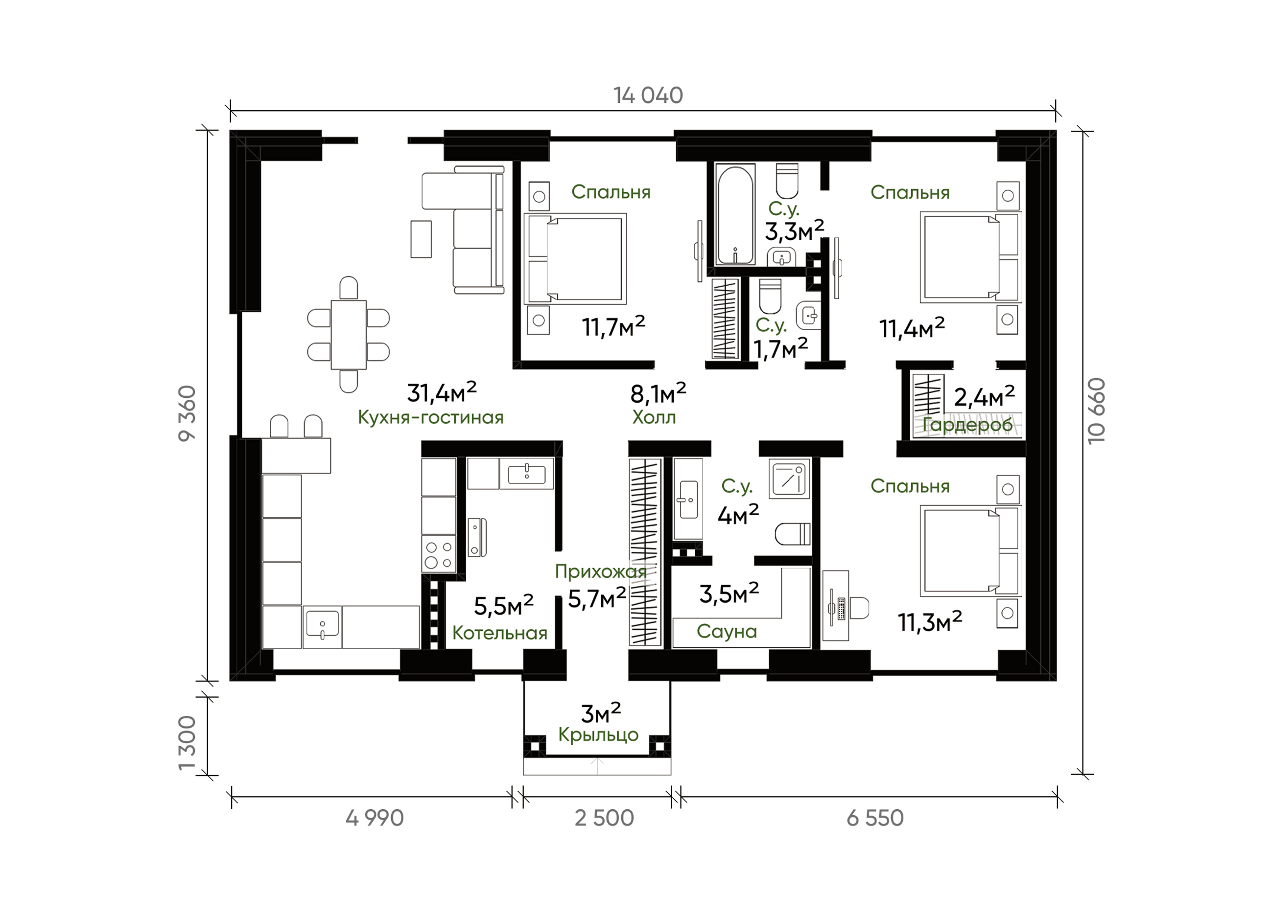 - Санузел: 3