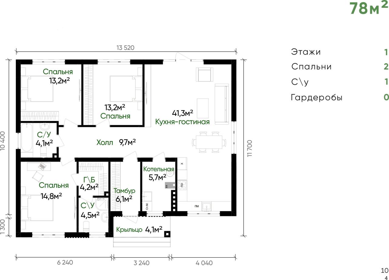 - Площадь: 78 м²