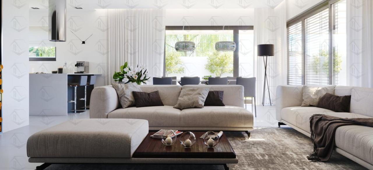 - Особенности: с бассейном, с гаражом, с террасой, с панорамными окнами